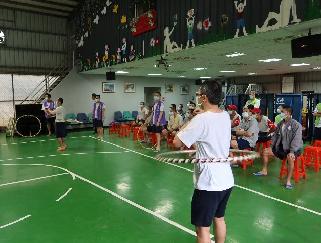 個人組比賽考驗參賽同學的柔軟度與持續力,愛舍及忠舍收容人表現精湛,以定點和競走方式搖呼拉圈逾25分鐘勇奪冠軍。