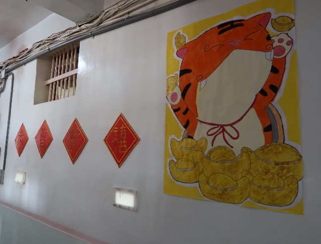 本監於農曆新年前1月24日,舉辦春節佈置比賽。收容人紛紛發揮自己的創意,創作各種賀新年的作品,使高牆內充滿濃厚的年味,陪伴無法返鄉的收容人迎接新春,紓解思鄉之情。本次競賽由孝舍榮獲冠軍,仁舍亞軍,愛舍季軍。