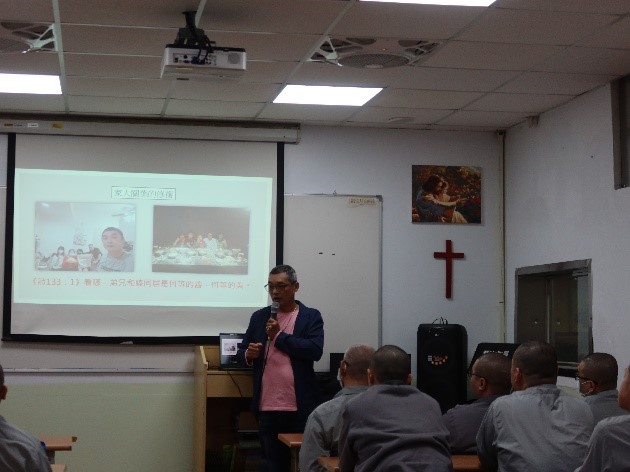 本監於113年11月25日邀請更生團契推薦成功更生人柯宗宏夫妻入監演講,以新造的人為主題,分享自己的生命經歷,表示信仰是生命的根基,在吸毒的路上只有不斷的失去,接觸信仰後,只要願意改變,在神都不是難事。共計115人收容人參與。