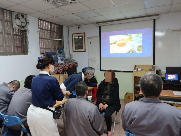 本監與佛教慈濟慈善事業基金會合作辦理慈濟讀書會,並於113年12月6日下午辦理家庭輔導日,邀請上課收容人家屬入監共同參與課程,讓家屬了解收容人在監處遇情形,並讓收容人有機會向家人展現改變的決心。課程中收容人與家屬一同禮佛、學唱手語歌曲,收容人向家人奉茶,互動感人溫馨。共計6名收容人與8名家屬參與。
